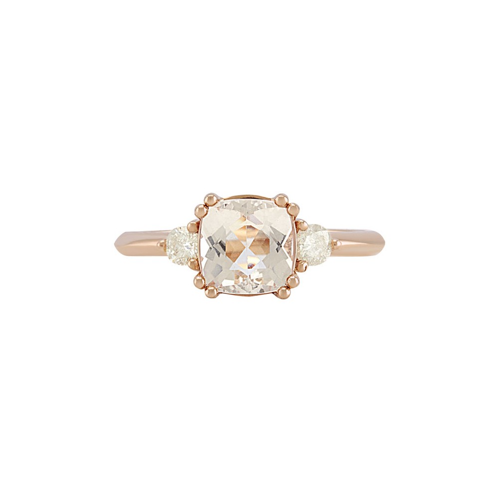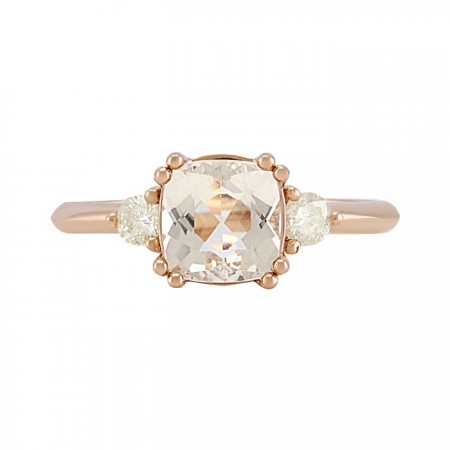 Beautiful ring in rose gold, cushion cut in its center and small diamonds. A special, elegant and femenine piece you cannot miss.