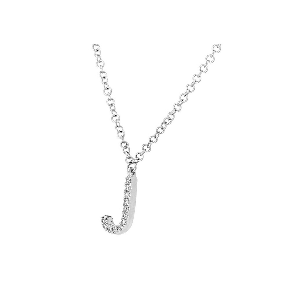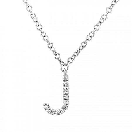 White gold necklace with letter "J" pendant with diamonds. Perfect for a gift.