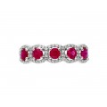 Exquisite, pink sapphires are encircled by brilliant pavé-set diamond halos in this eye-catching and timeless design in 14K.