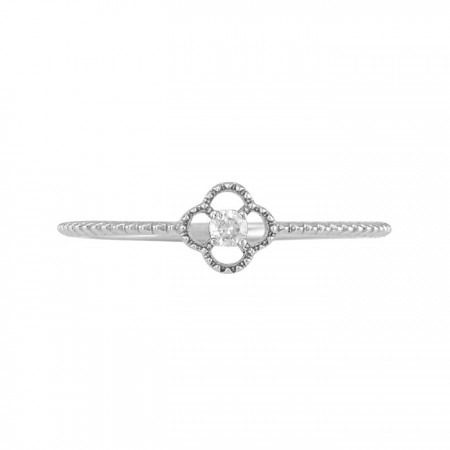 Solitaire ring in white gold with an original design, simulating a flower on its front.