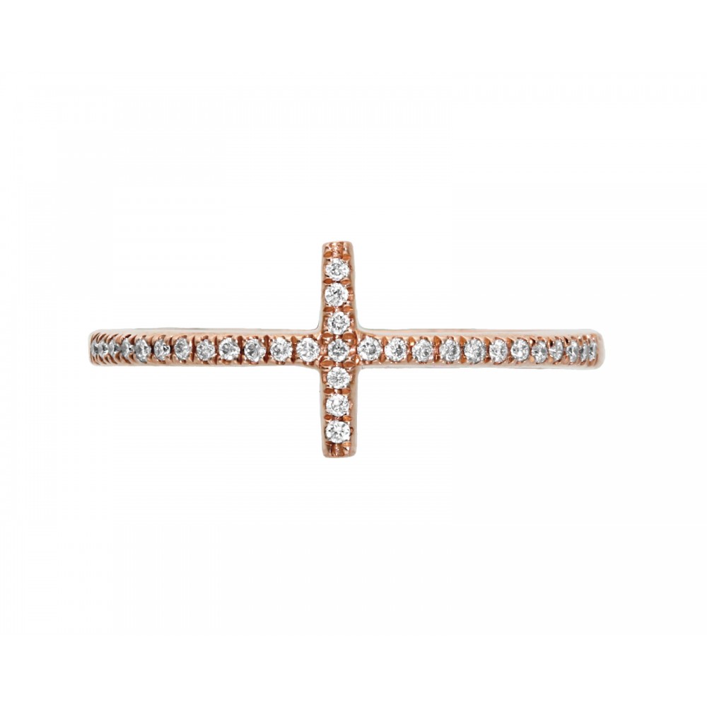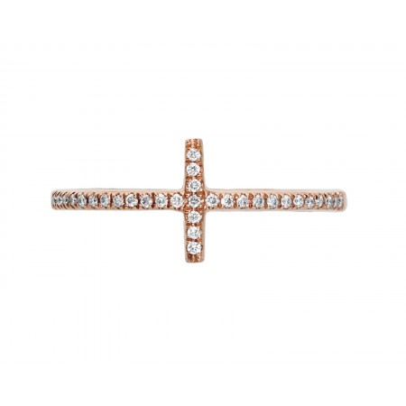 Exclusivo anillo de nuestra línea "Fancy" en oro rosa, con una cruz central con diamantes. Esta joya es actual, si quieres lucir tus manos en tendencia. Esta es una de tus mejores opciones. Atrévete a innovar y complementar tu outfit con una pieza tan especial como esta.