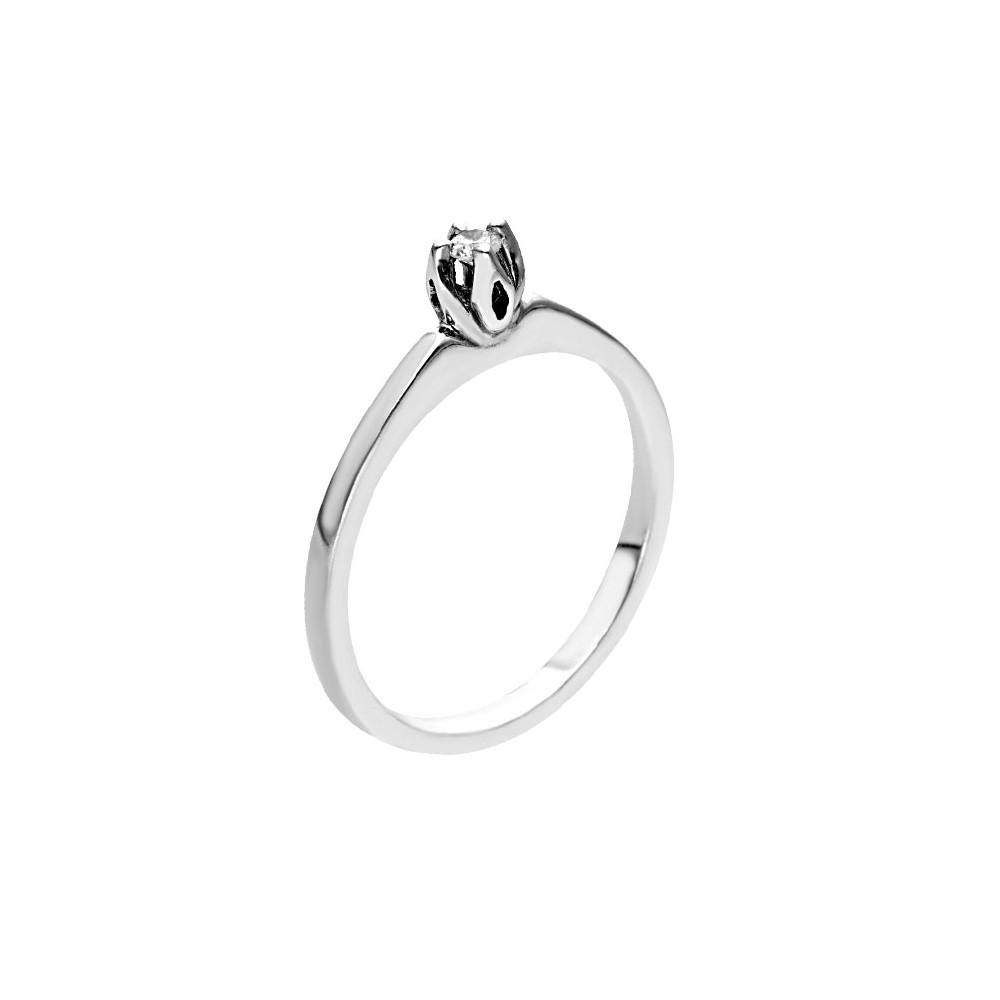 Anillo solitario en oro blanco con un diamante central en corte redondo, hermoso anillo que es perfecto para lucir en tu día especial.