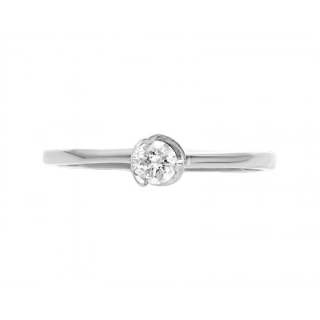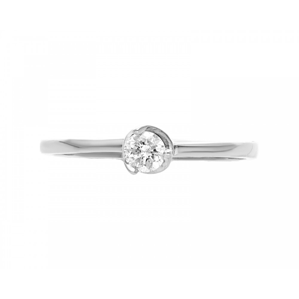 Anillo solitario en oro blanco con una silueta original que sostiene el diamante de una manera magnifica. Esta pieza es delicada y clásica, perfecta para lucirlo en tu día especial.