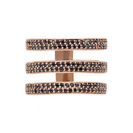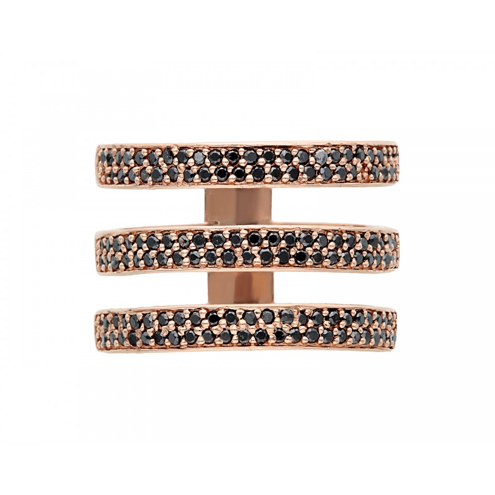 Anillo de nuestra exclusiva línea "Fancy" es una pieza original en su diseño de triple aro realizado con diamantes engastados en oro rosa. Pieza elegante y moderna.