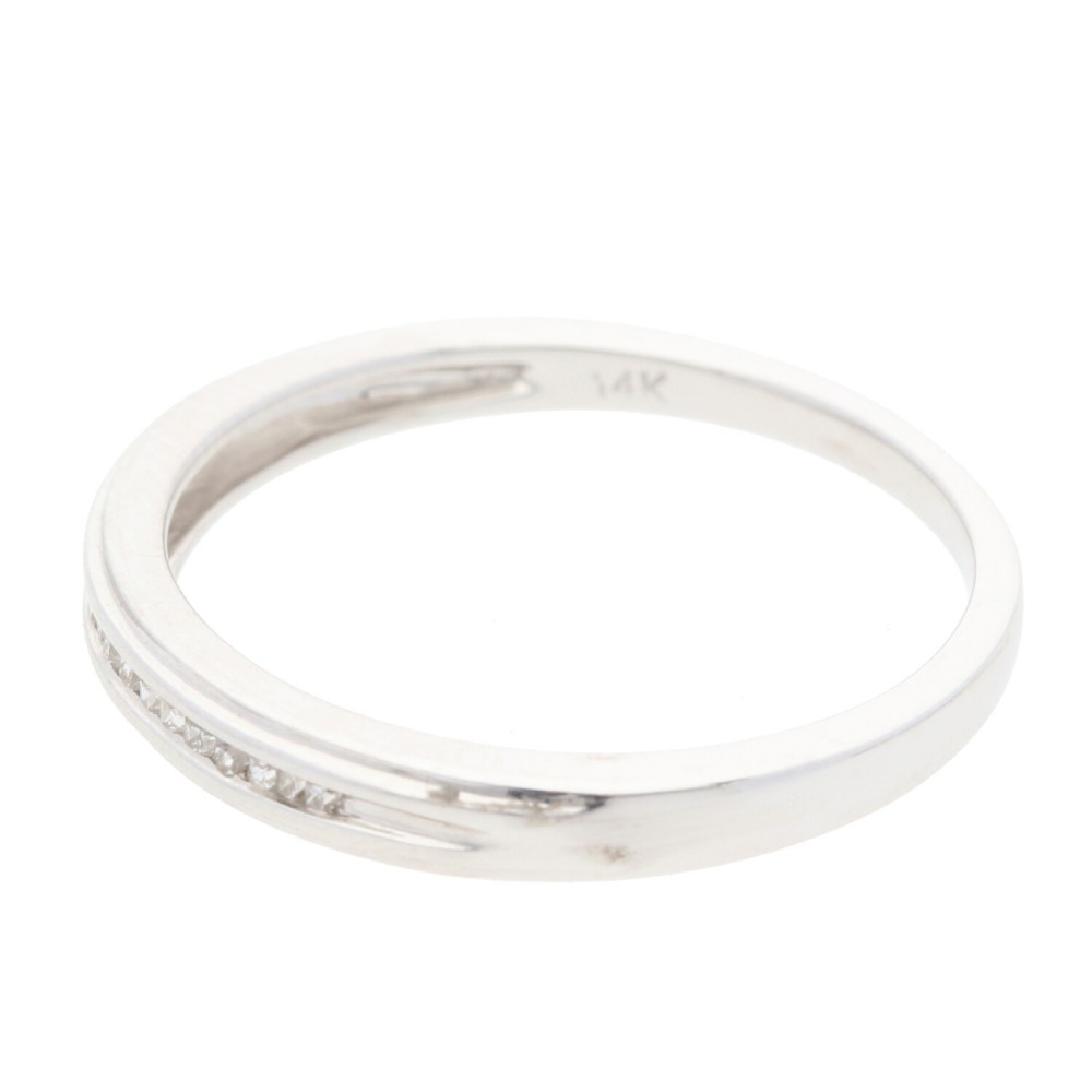 Media Churumbela montada a canal en oro blanco con diamantes en corte redondo, delicado diseño ideal para la celebración de tu aniversario.