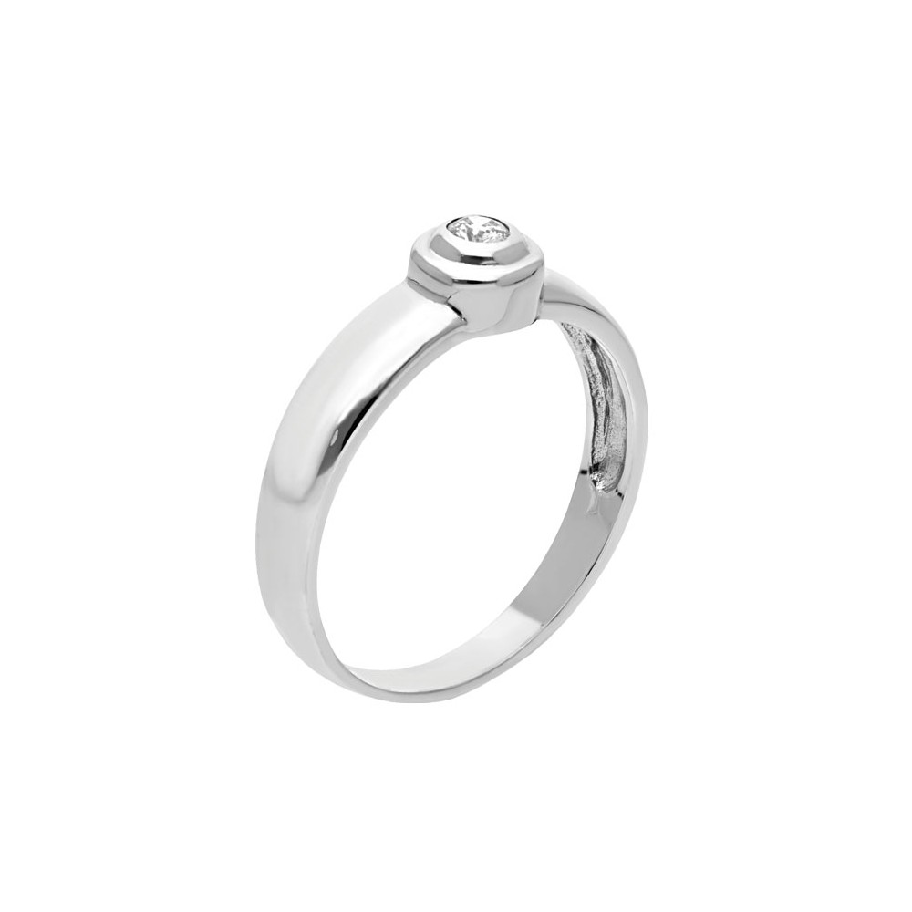 Anillo solitario en oro blanco con hermoso diamante, una joya clásica para el día más importante.
