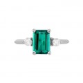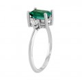 Hermoso anillo de diseño exclusivo con una Esmeralda central en corte Emerald con un tratamiento de calor para así intensificar su tono Verde.
