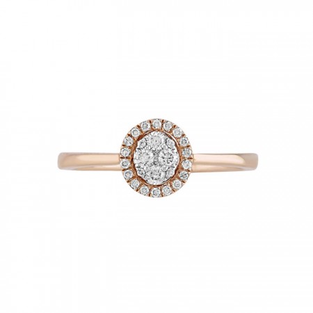 Anillo solitario en oro rosa con diamantes, estilo ilusión.