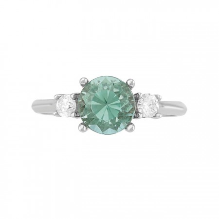 Hermoso anillo de diseño exclusivo en oro blanco con una piedra central turmalina natural y diamantes laterales.