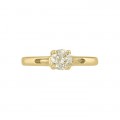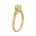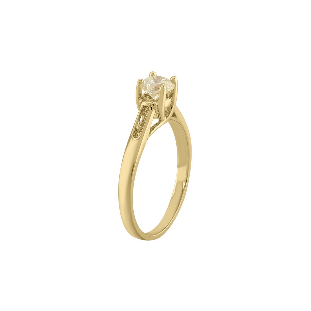 Anillo solitario en oro amarillo de cuatro uñas con diamante en corte redondo.