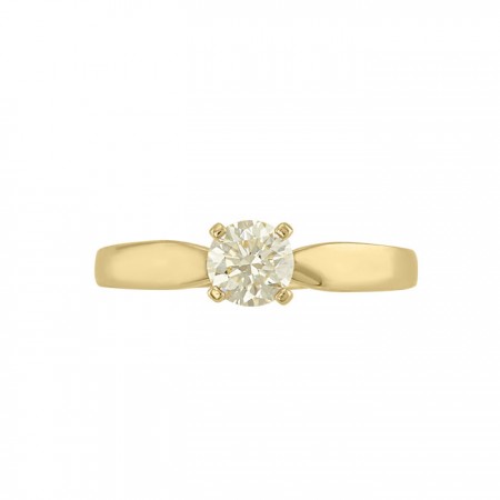 Anillo solitario en oro amarillo de cuatro uñas con espectacular diamante en corte redondo.