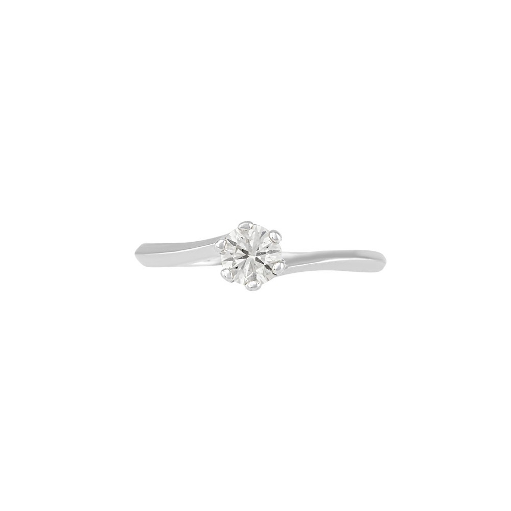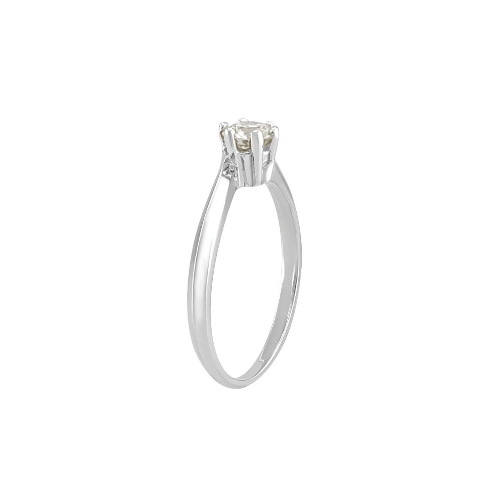Anillo solitario en oro blanco de 14K con espectacular diamante corte redondo.
