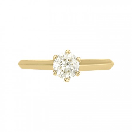 Anillo solitario en oro amarillo de seis uñas con hermoso diamante en corte redondo.