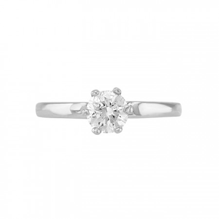 Anillo solitario en oro blanco con 6 uñas y espectacular diamante en corte redondo.