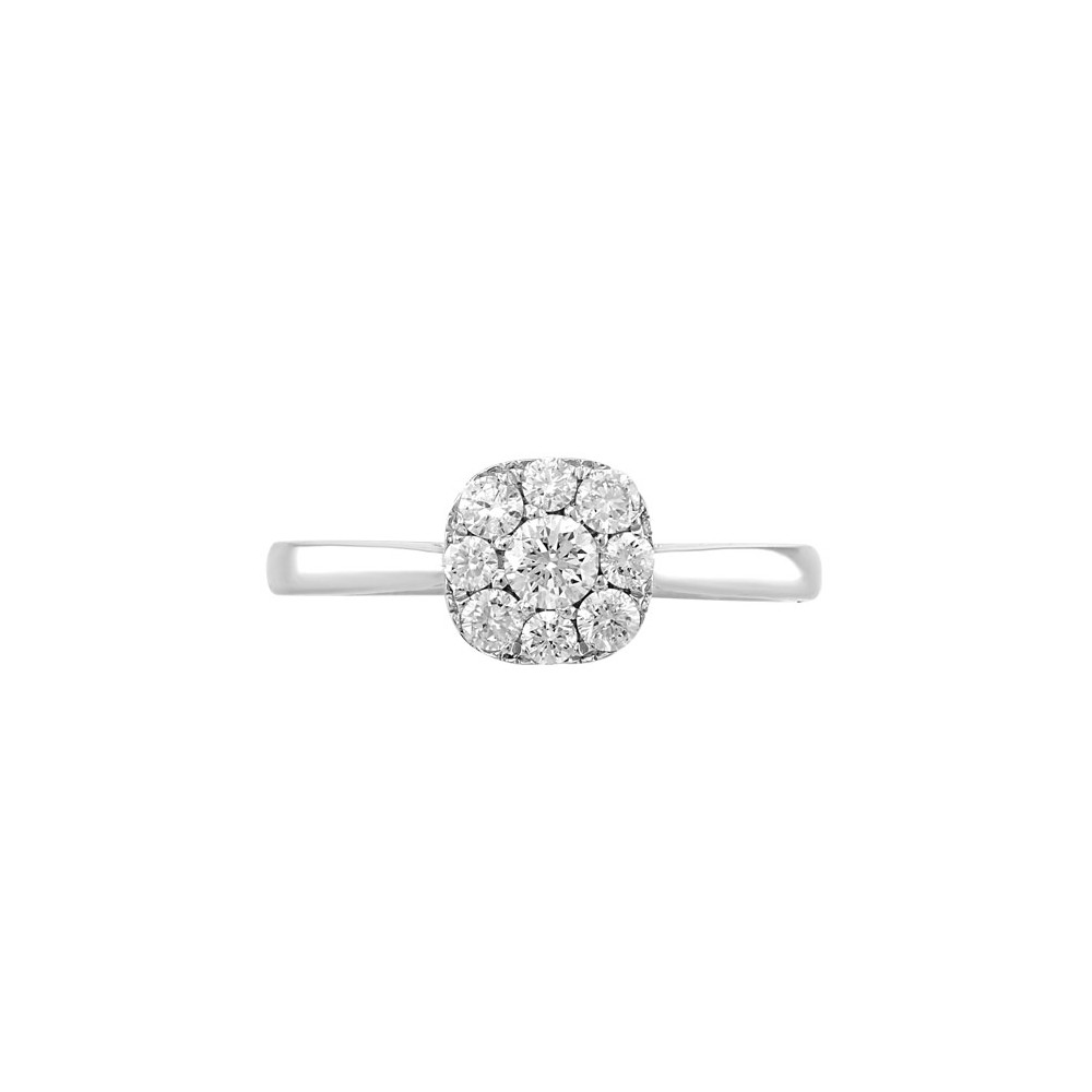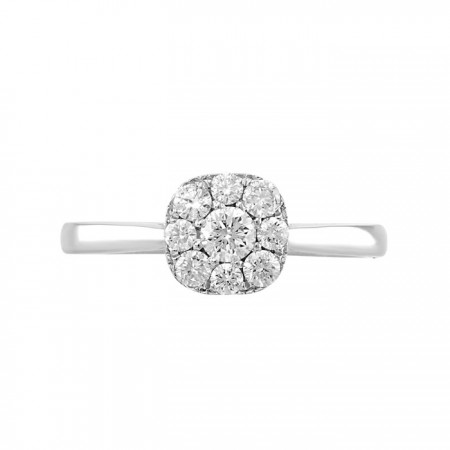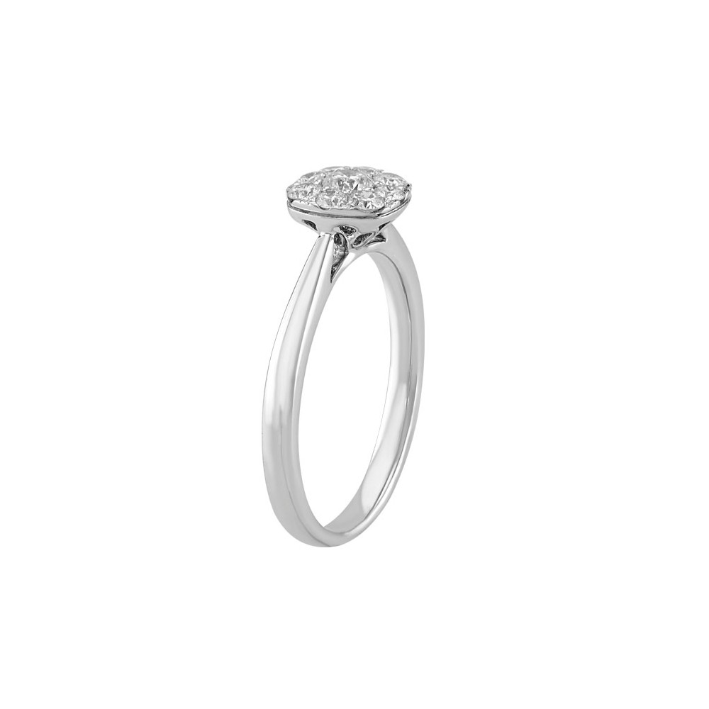 Anillo solitario en oro blanco de 14k con diamantes, en un estilo ilusión que te deslumbrará.