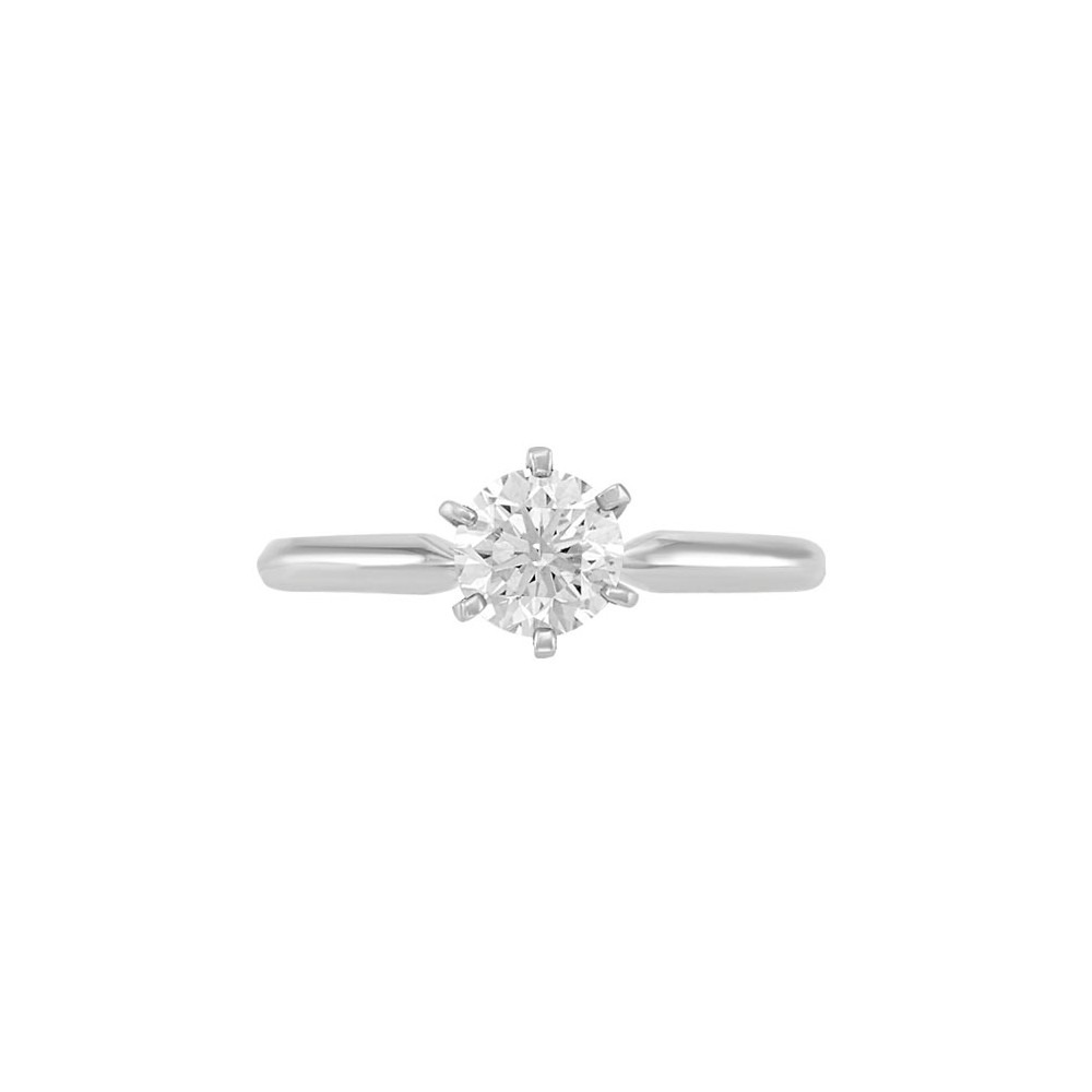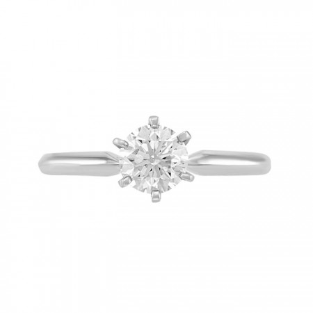 Anillo solitario de 6 uñas en oro blanco con un espectacular diamante en corte redondo.