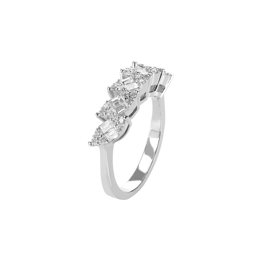 Anillo de lujo en oro blanco con diamantes en corte baguette.