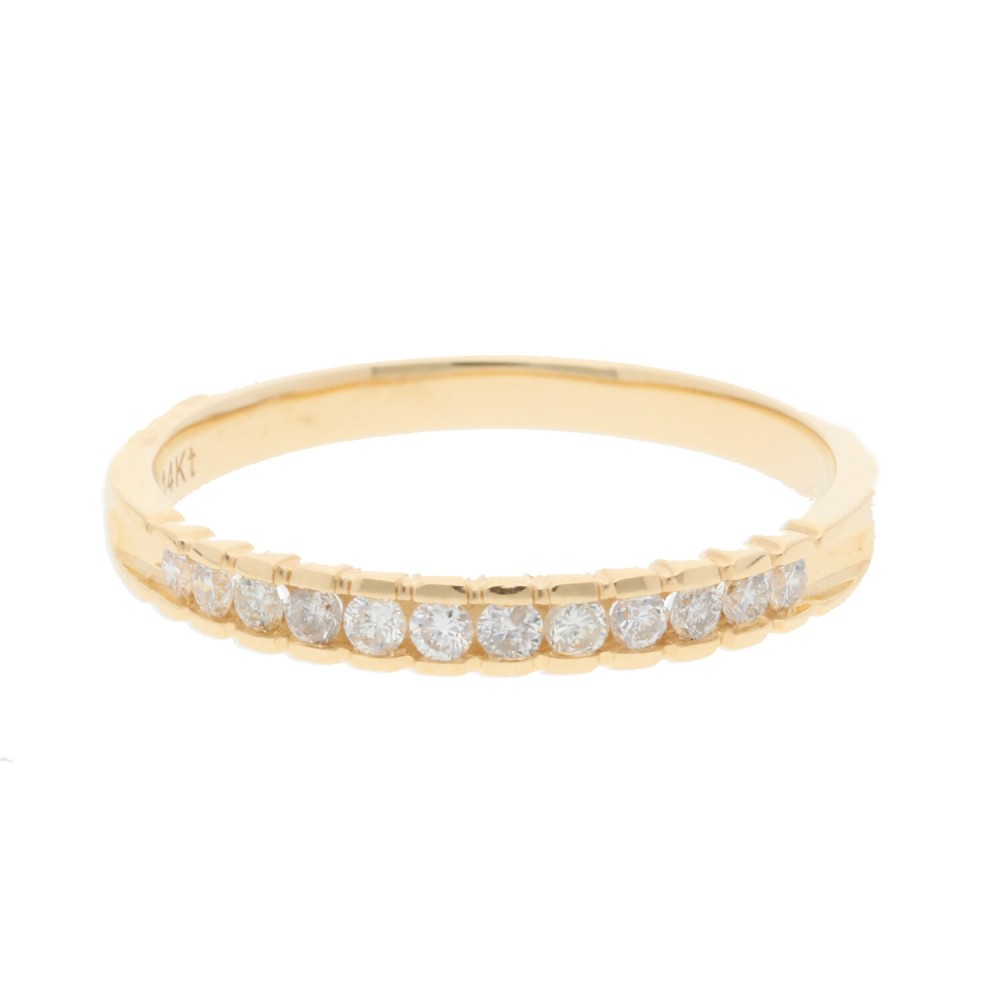 Churumbela elaborada en oro amarillo con diamantes de corte redondo. Esta es una joya clásica que le dará un estilo incomparable a tu día especial. Perfecto para lucir al día a día en compañía de tu anillo de compromiso o en eventos especiales.