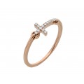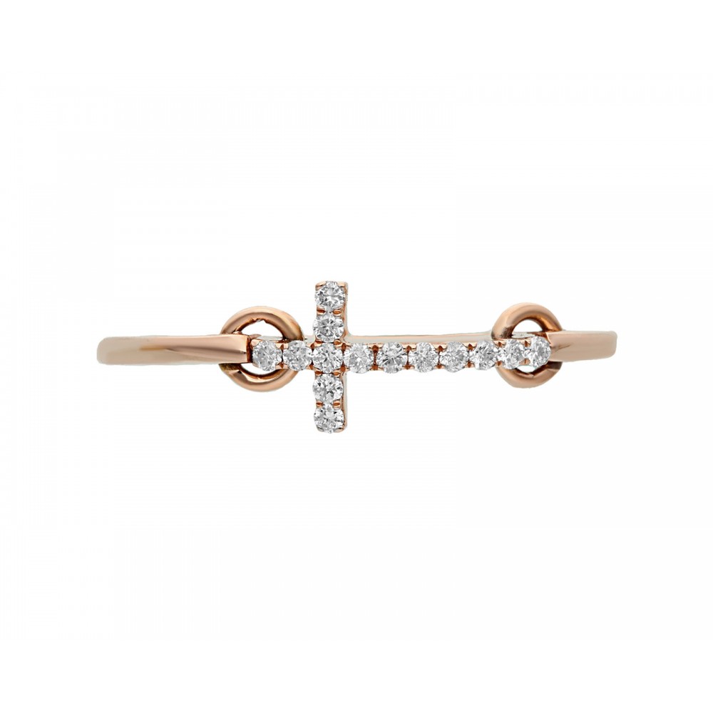 Anillo en oro rosa con hermosa cruz central de diamantes