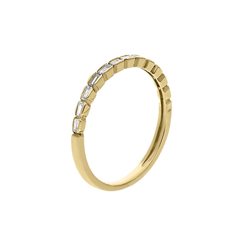 Churumbela en oro amarillo con diamantes en corte baguette. Esta joya es única y muestra originalidad, con ella podrás lucir de una manera diferente al acompañar tu anillo de compromiso.