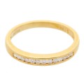 Churumbela elaborada en oro amarillo con medio carril de diamantes en corte redondo. Esta es una joya clásica que le dará un estilo incomparable a tu outfit. Perfecto para lucir al día a día en unión con tu anillo de compromiso o en eventos especiales.