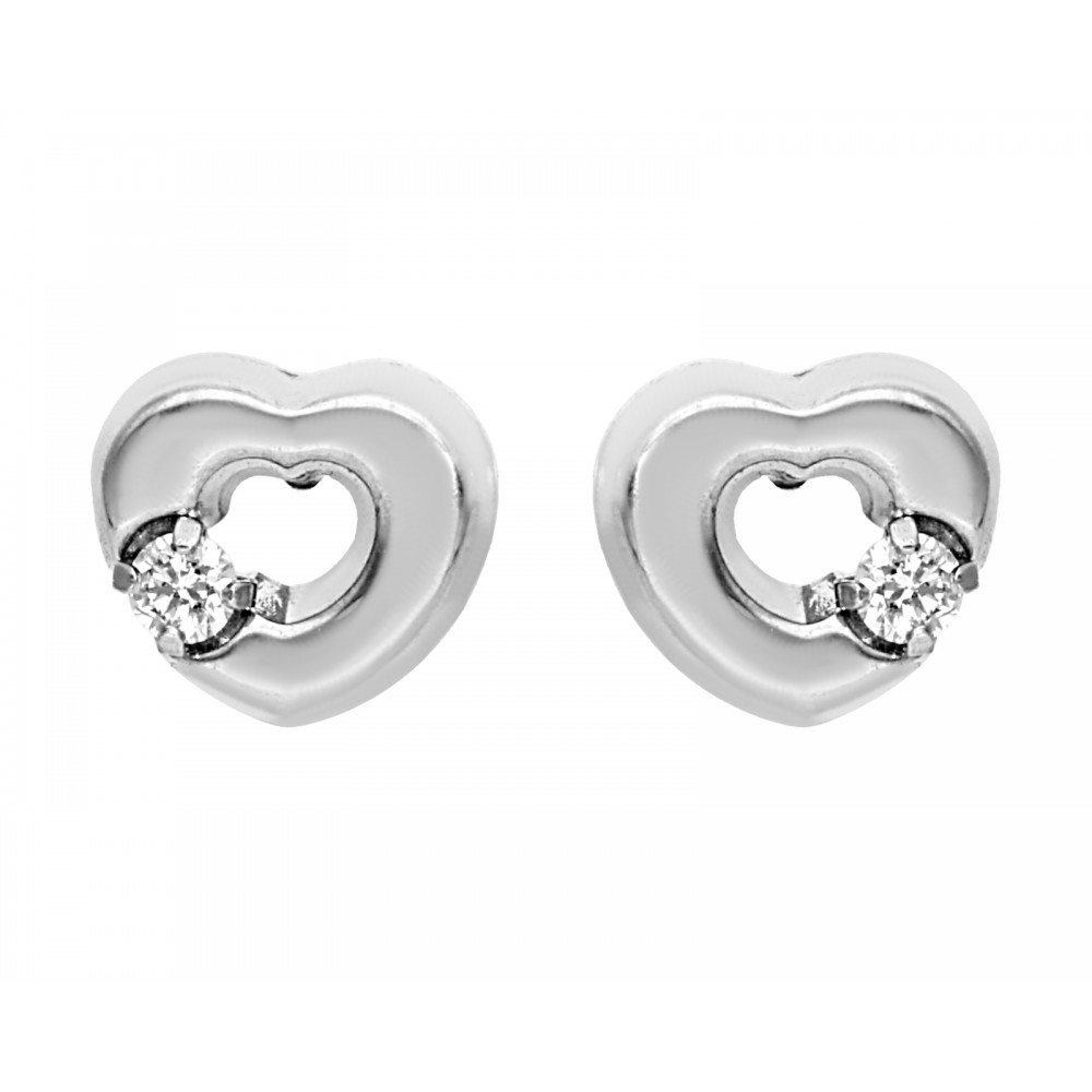 Par de broqueles en oro blanco en forma de corazón para bebés, una pieza discreta y cómoda para tu bebé.