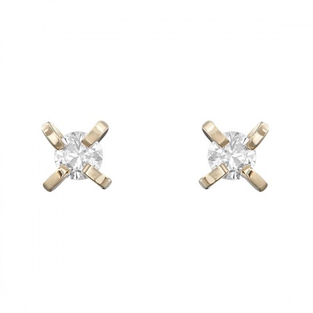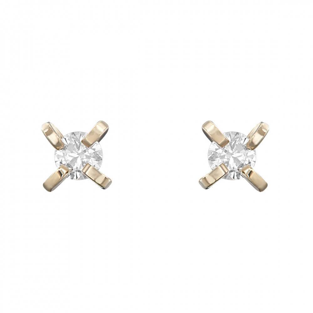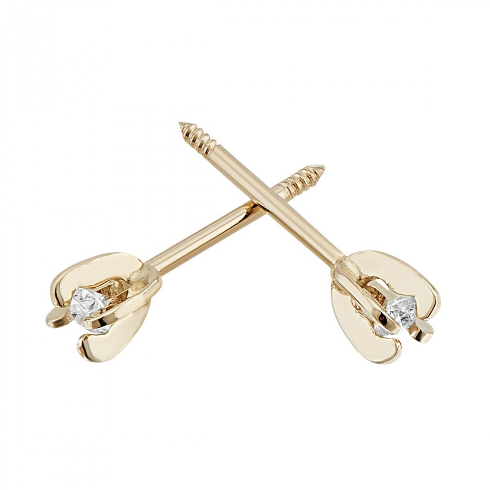 Broqueles en Oro amarillo con hermoso diamante central, perfectos para el uso en recién nacidos.