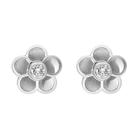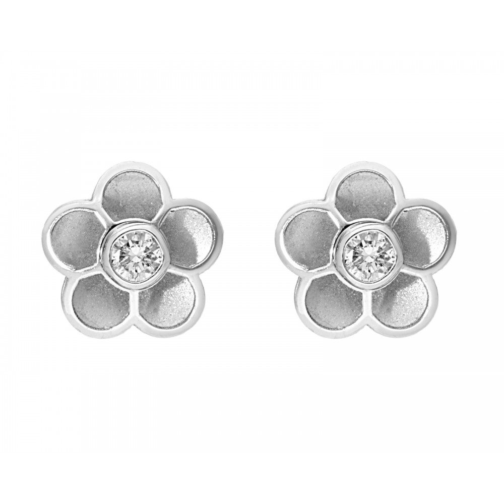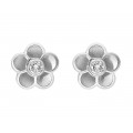 Broqueles con un delicado diseño de flor en oro blanco con un diamante central, de discreto tamaño que no pasan desapercibidos.