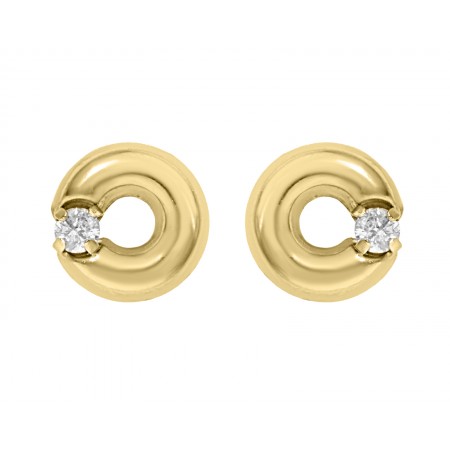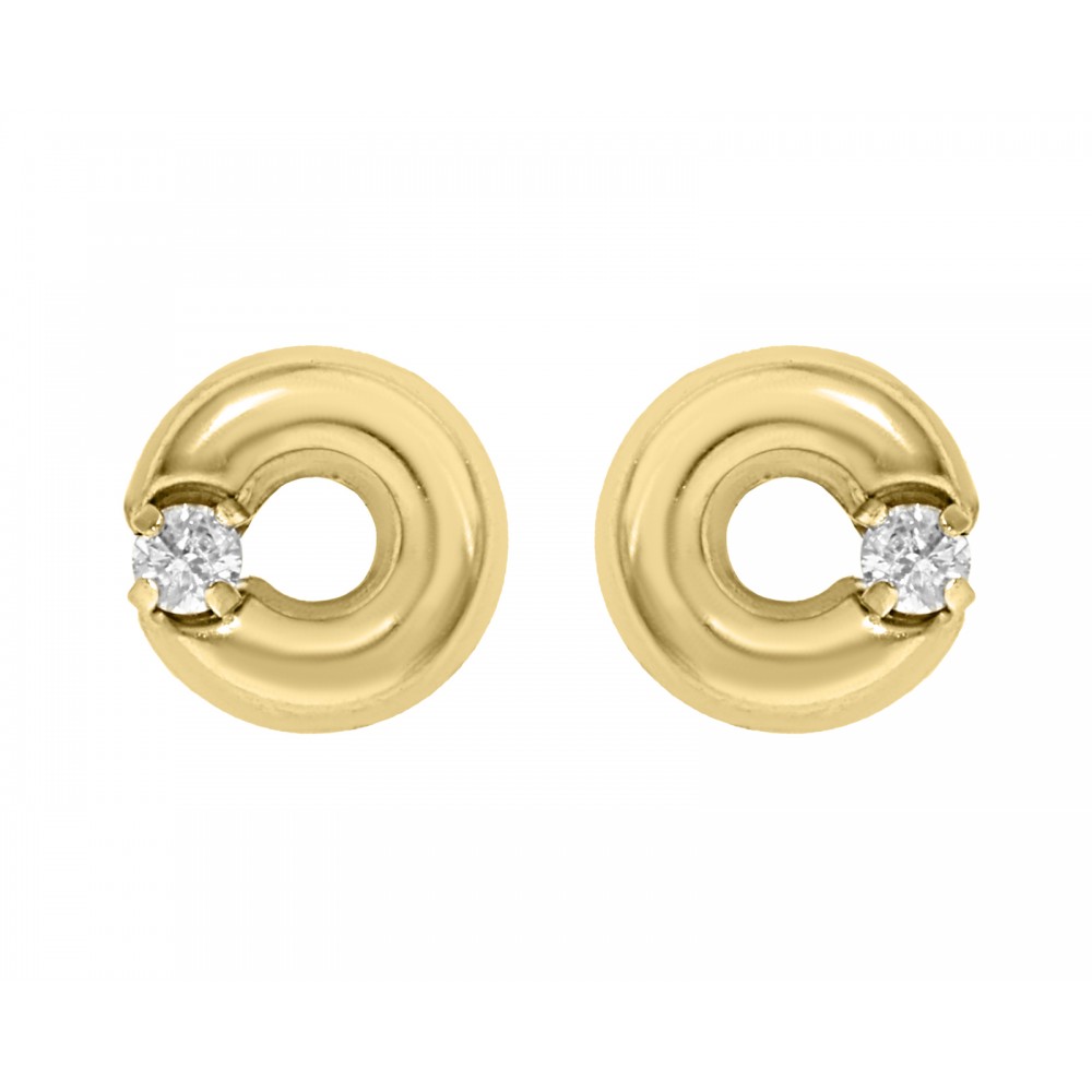 Hermoso par de broqueles finamente elaborados en oro amarillo con un detalle especial de un diamante. Perfecto para regalar en los eventos especiales de nacimiento.