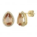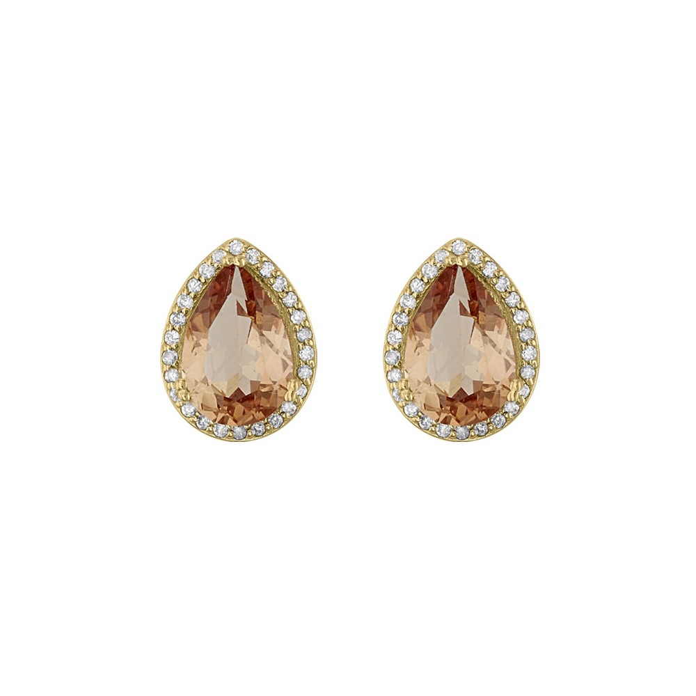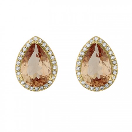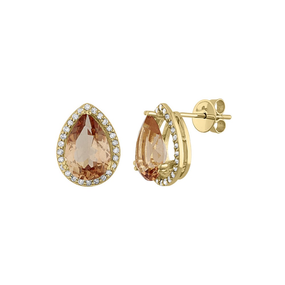 Aretes de lujo con Topacio en corte pera acompañado de diamantes.