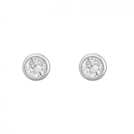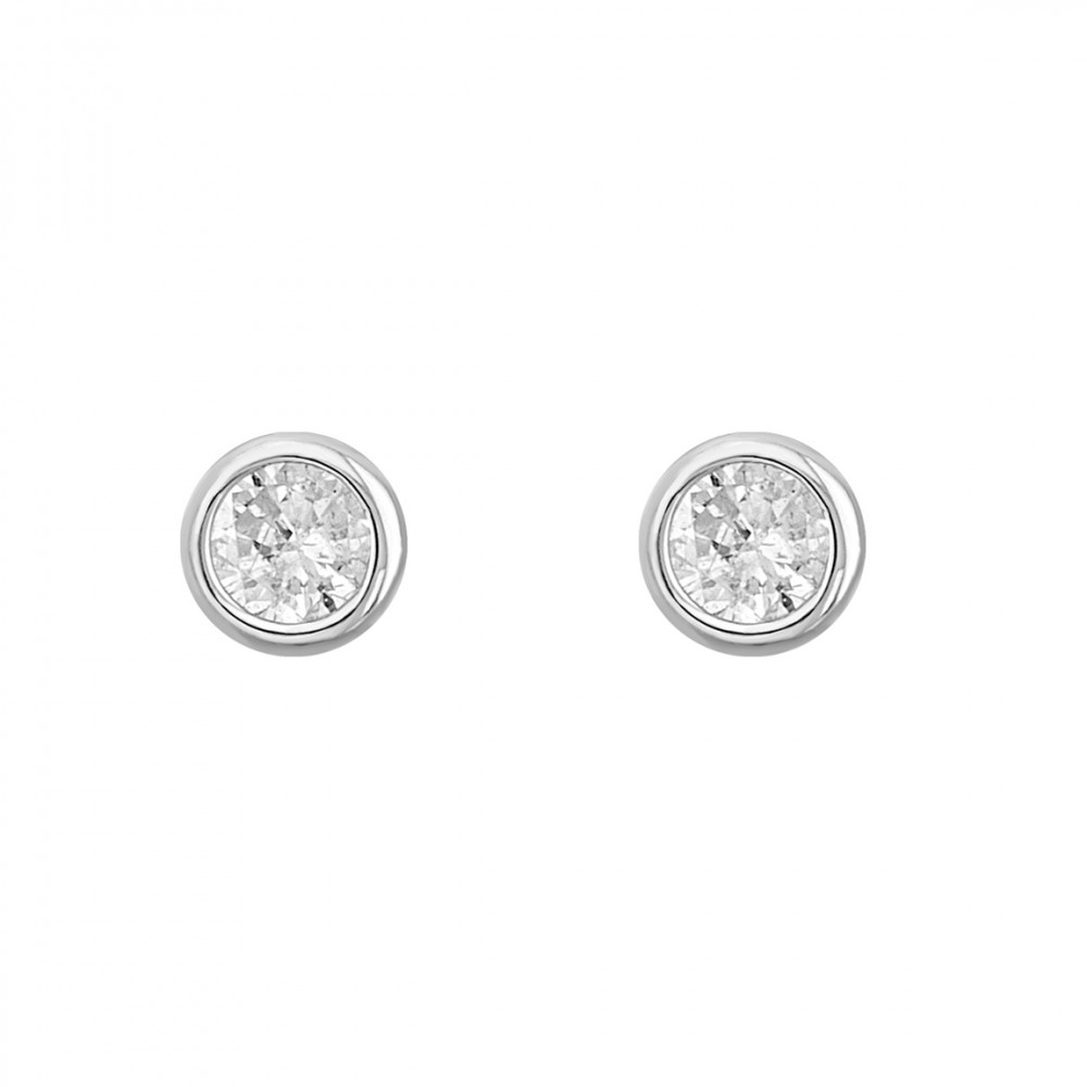 Broqueles en oro blanco con diamante con un delicado bisel, este es el regalo perfecto para tu bebé.