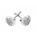 Pequeños broqueles tipo español en forma de corazón, elaborados en oro blanco. Con sus diamantes centrales le dan un toque muy especial a su diseño.