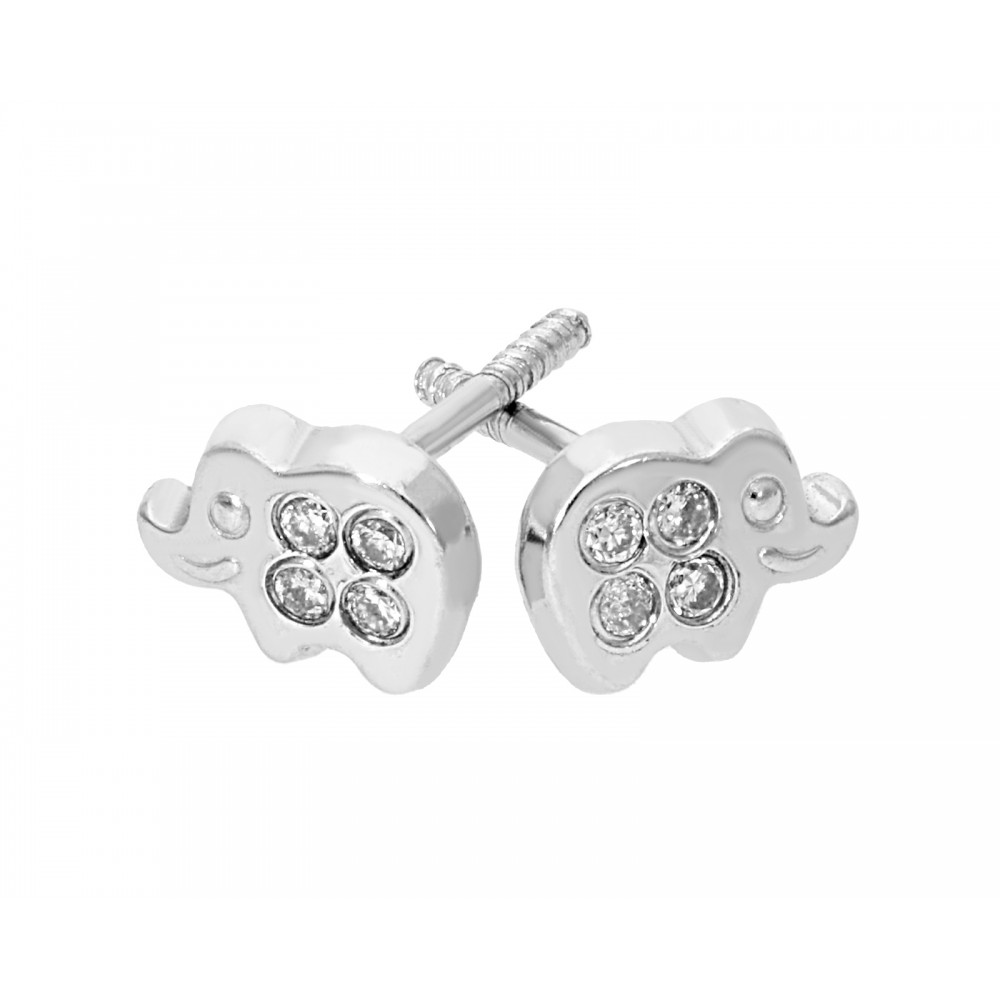 Lindos broqueles para bebé en forma de elefante. Este par elaborado en oro blanco y diamantes, es una pieza que destaca por si sola.