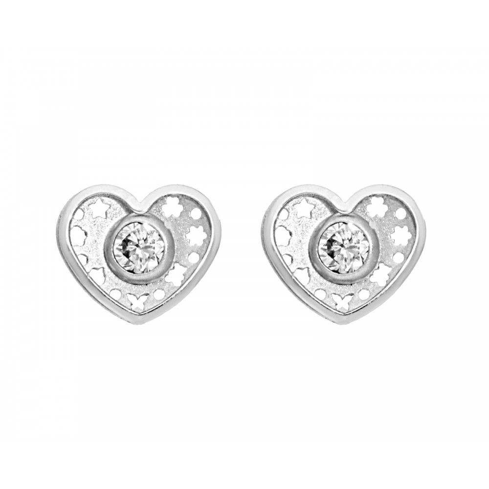 Lindos broqueles en forma de corazón en oro blanco acompañados por un diamante central.
