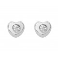 Pequeños broqueles tipo español en forma de corazón, elaborados en oro blanco con su diamante central.