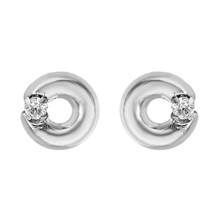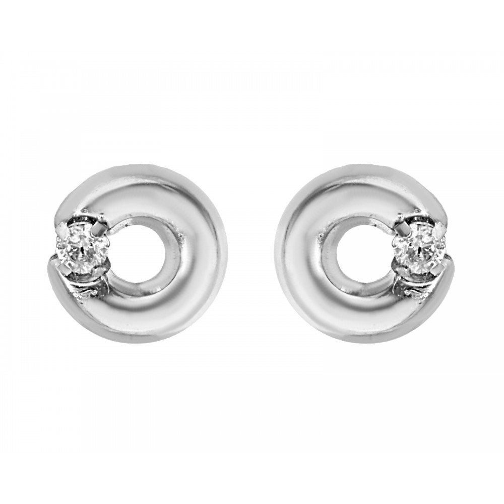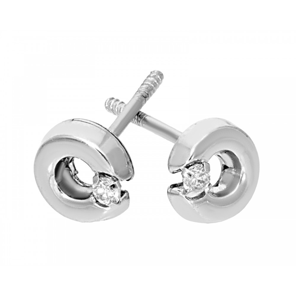 Lindos broqueles en oro blanco acompañados por un fino diamante. Excelentes para el uso en recién nacidos.