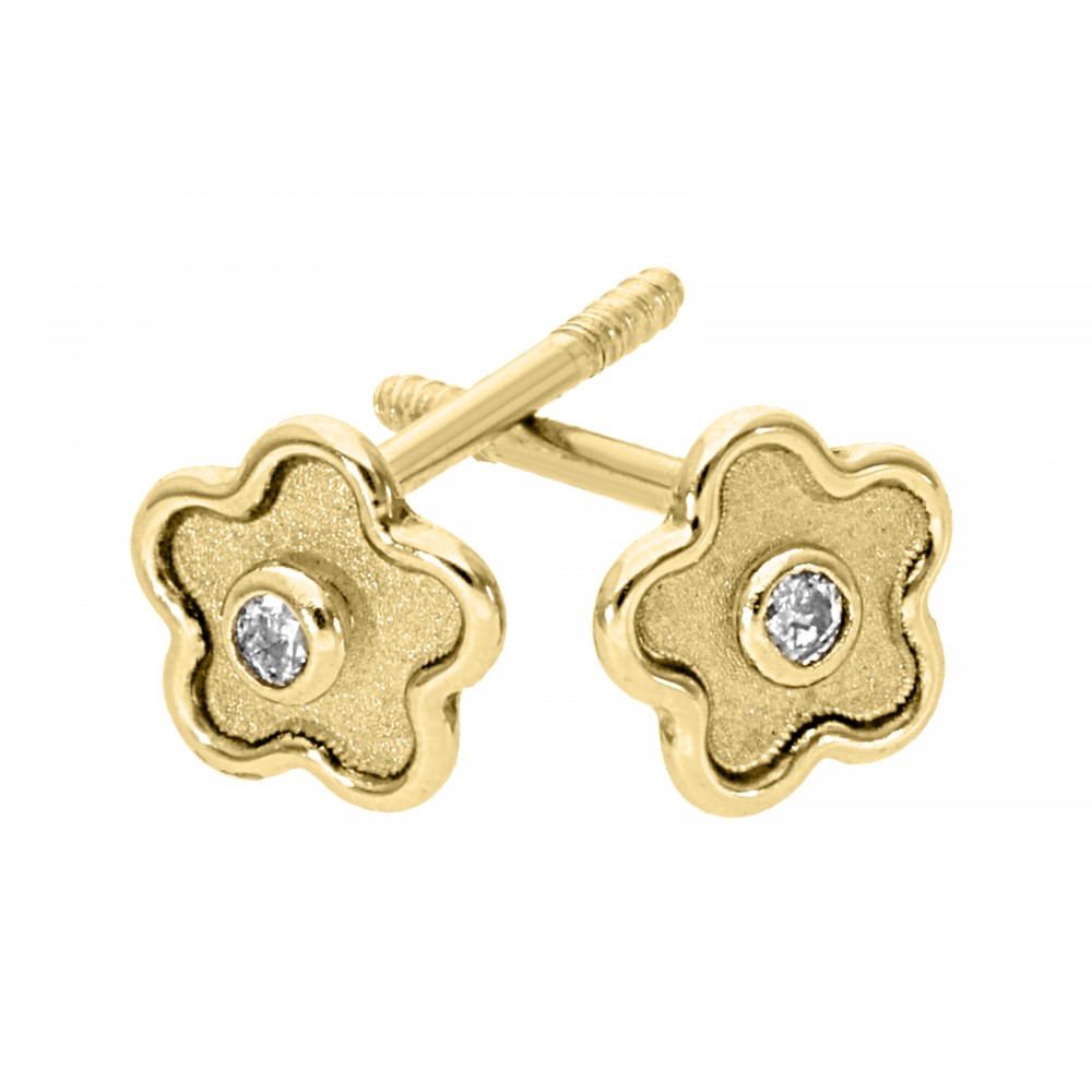 Broqueles para niña en forma de estrella, elaborados en oro amarillo con diamante central.