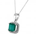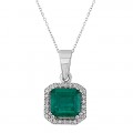 Gargantilla con dije clásico de Esmeralda rodeado por un bellísimo haló de diamantes.