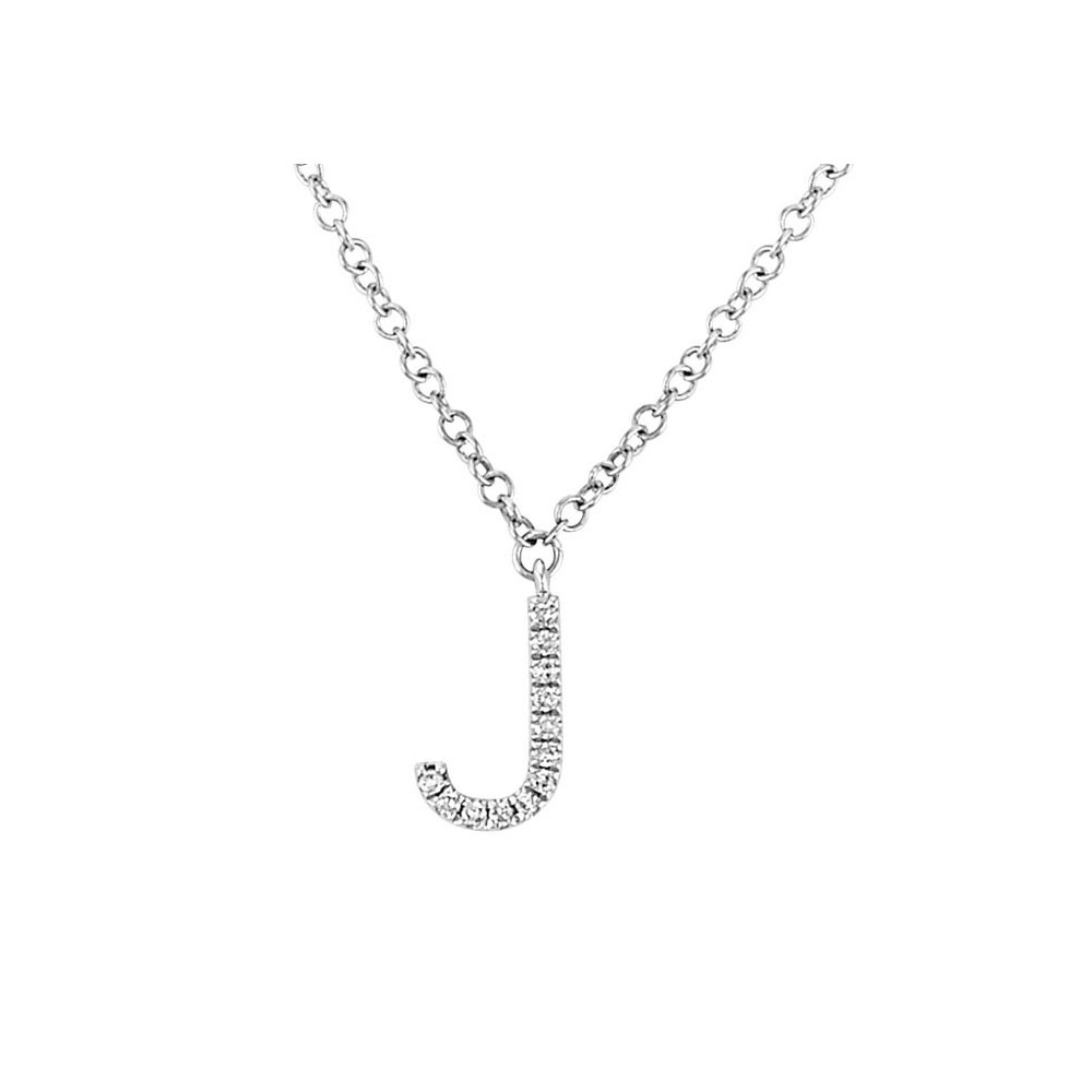 Gargantilla en oro blanco con dije letra "J" con diamantes.