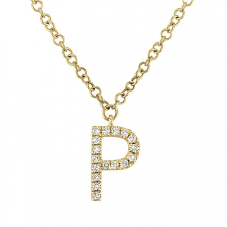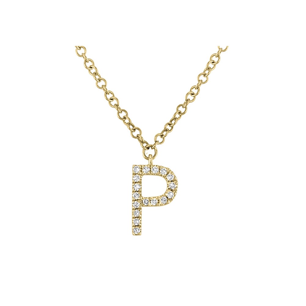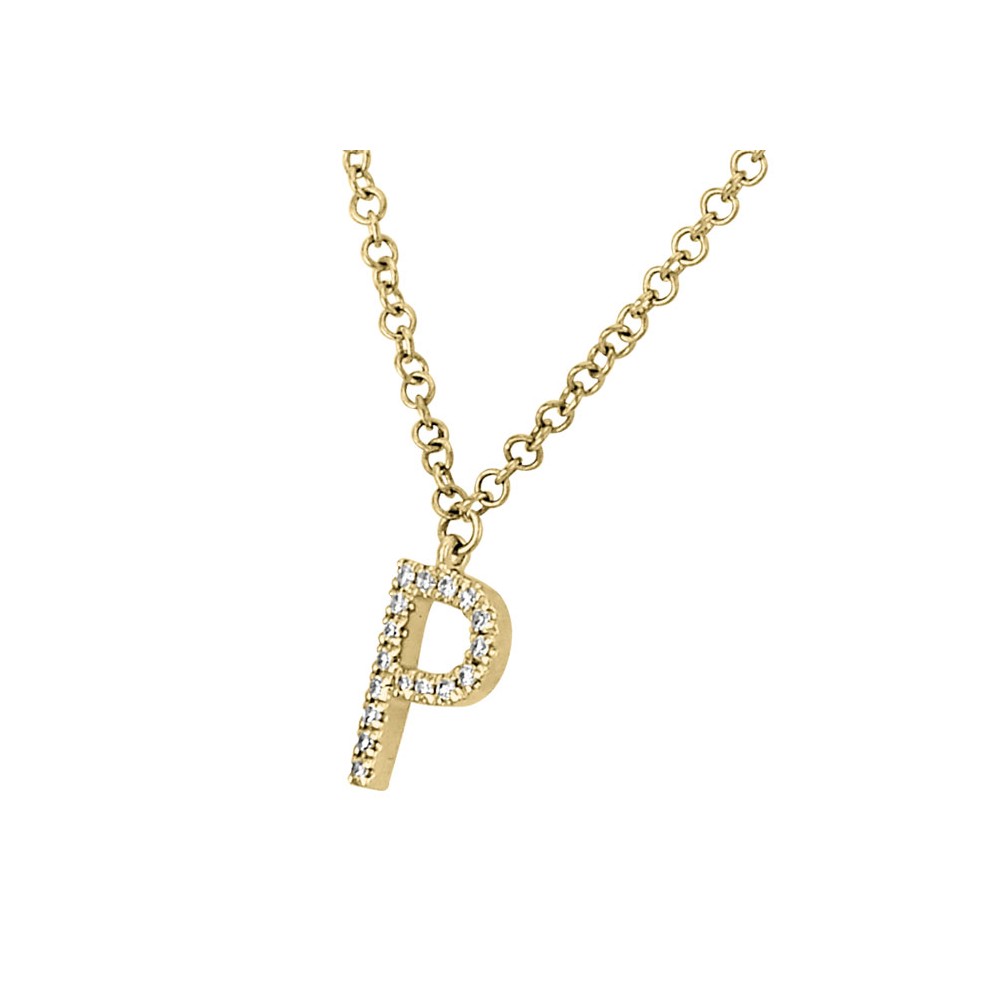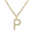 Gargantilla en oro amarillo con inicial "P" con diamantes.