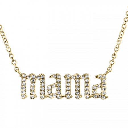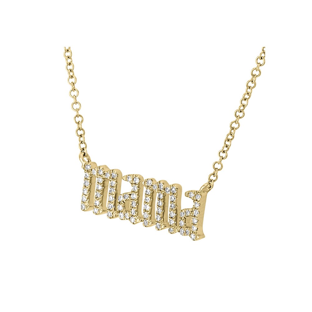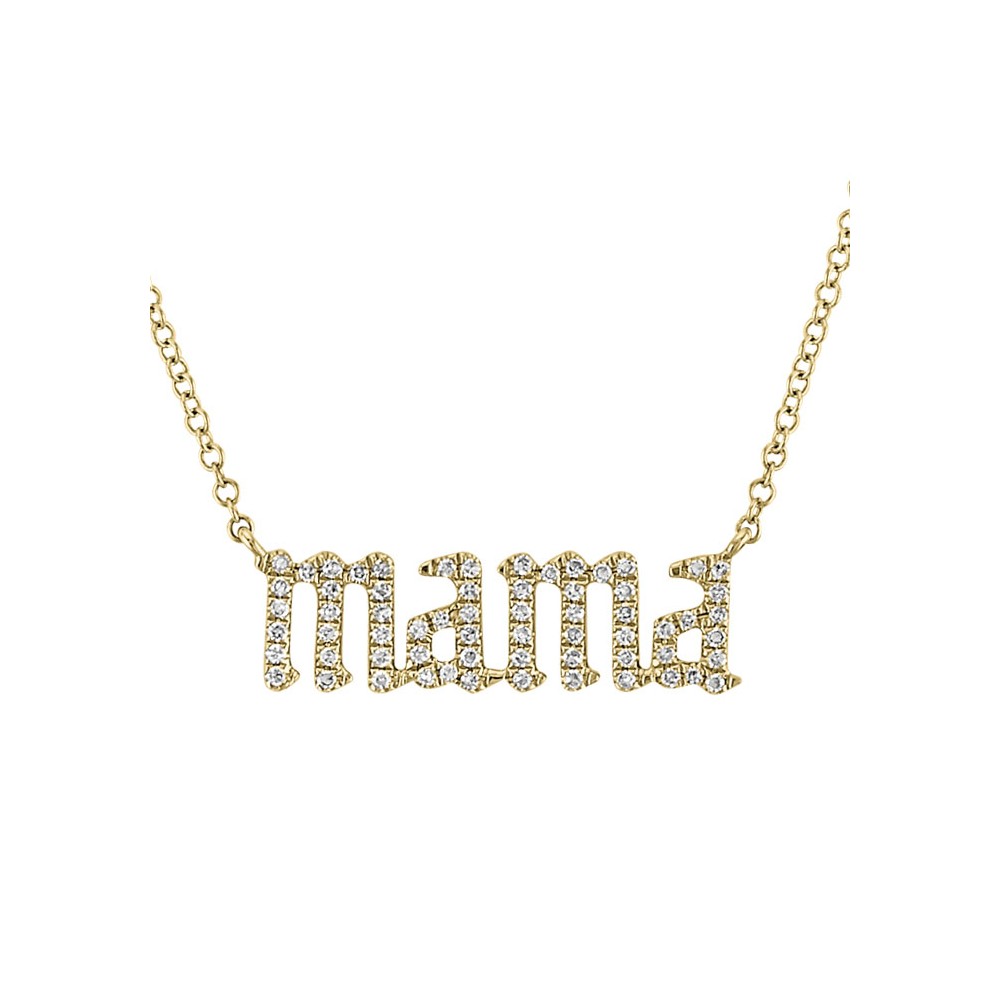 Gargantilla en oro amarillo con palabra "mamá" con diamantes, una regalo muy especial.