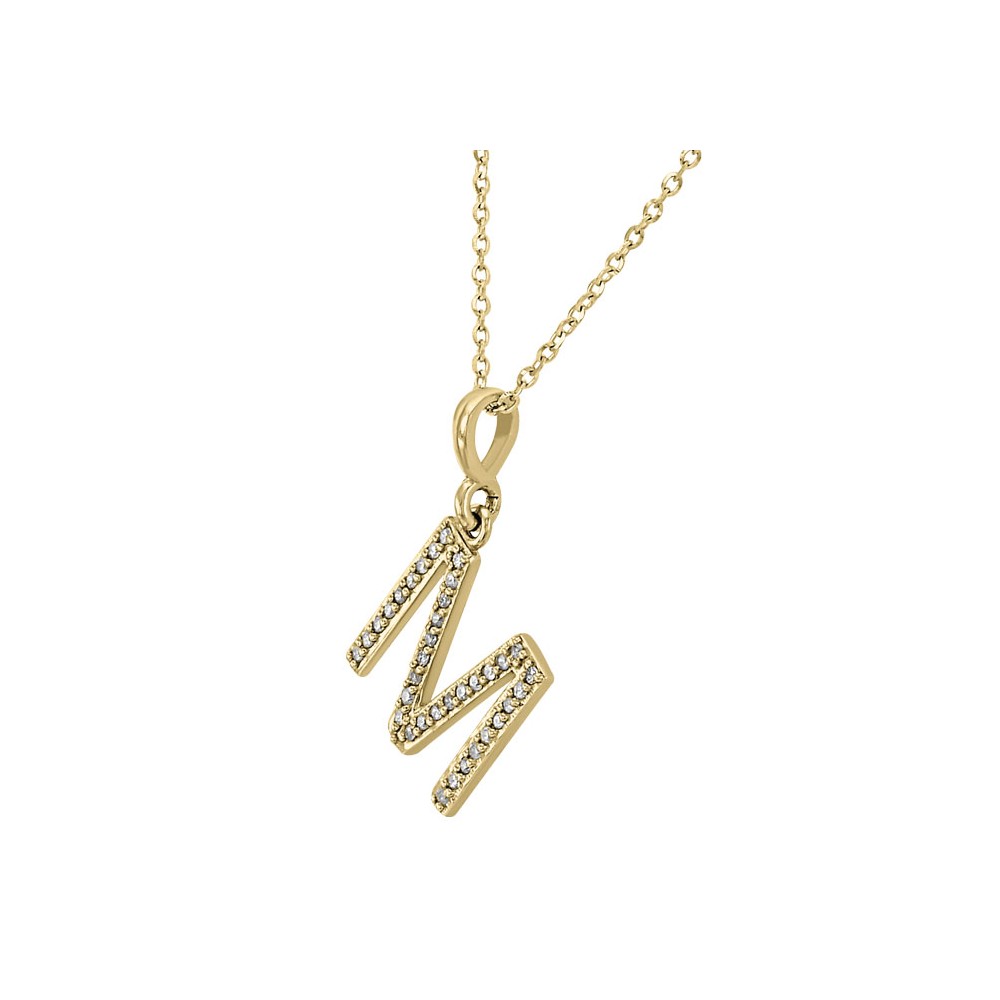 Gargantilla en oro amarillo con dije de letra "M" de diamantes.