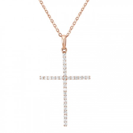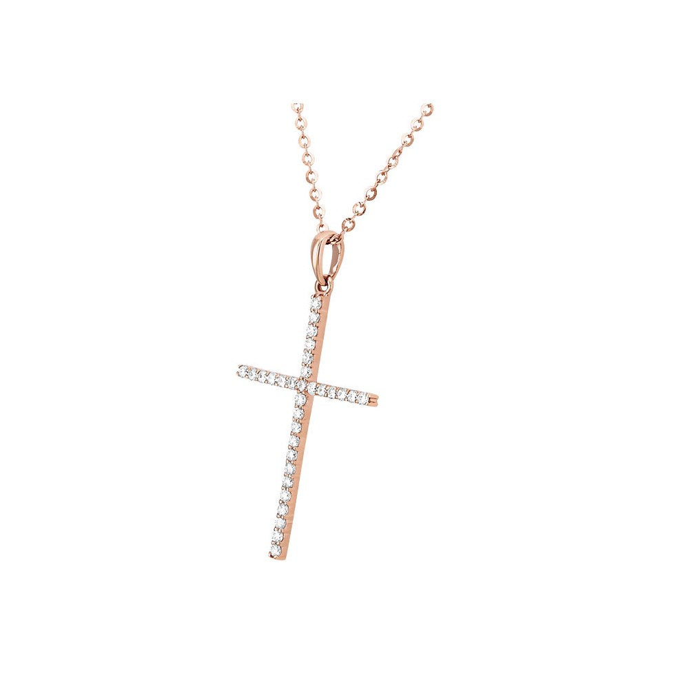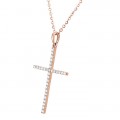 Gargantilla en oro rosa con un hermoso dije en forma de cruz con diamantes.