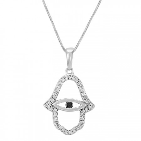 Gargantilla en oro blanco con dije de Mano de Fátima