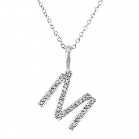 Gargantilla en oro blanco con letra "M" de diamantes. Perfecta para uso diario.