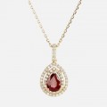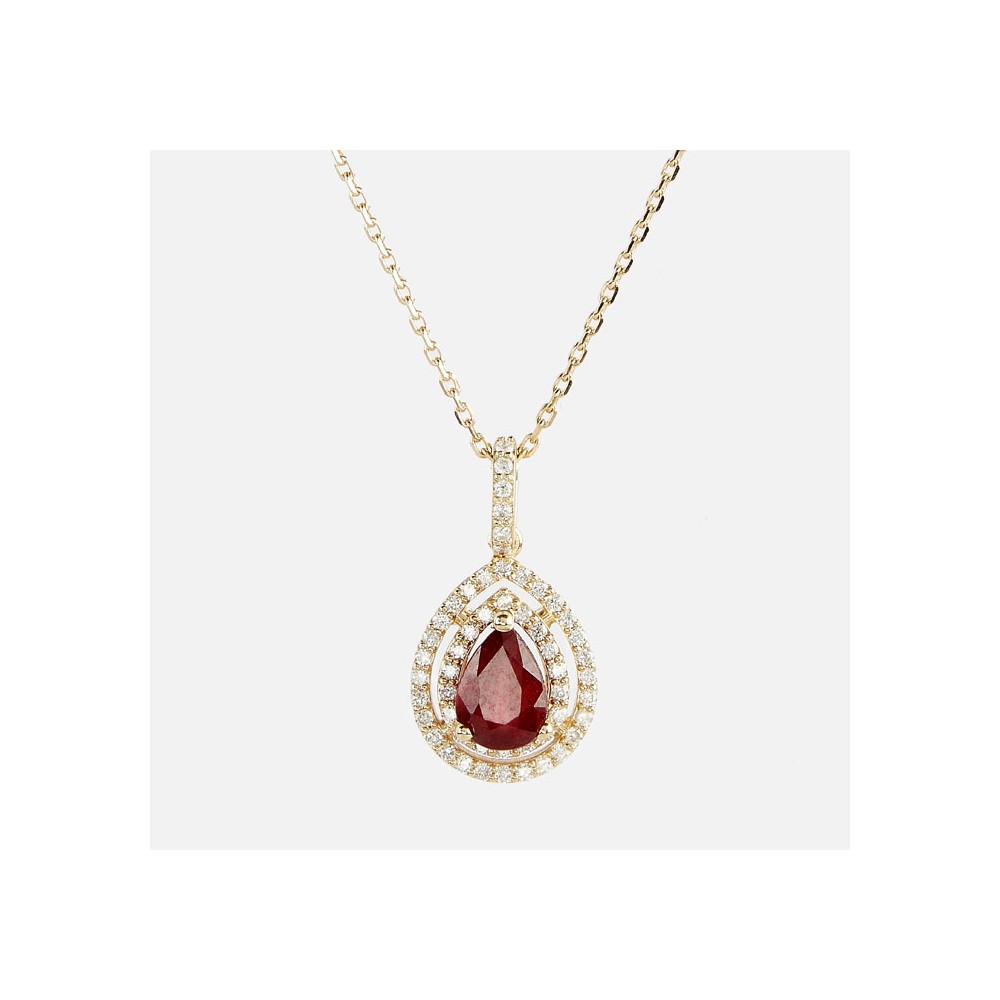 Gargantilla en oro amarillo con rubi y diamantes.