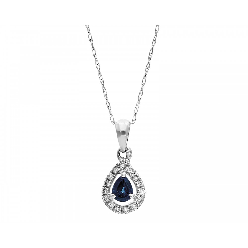 Este dije de diseño exclusivo y clásico, es un deleite de elegancia en cada detalle. Con un hermoso Záfiro central de un azul profundo en corte pera que contrasta con el halo de diamantes que lo abrazan. Un dije para no pasar desapercibida, mostrando siempre la elegancia y delicadeza de la mujer.