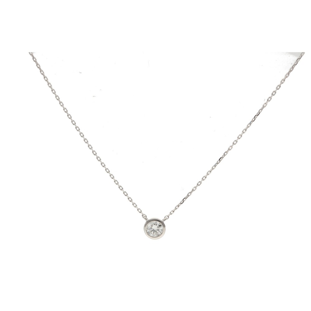 Gargantilla con pequeño dije de bisel con diamante y una cadena de oro blanco.