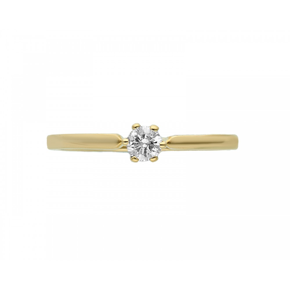 Delicado anillo solitario con diamante en corte redondo, una joya perfecta para uno de los días más importantes de tu vida.