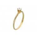 Anillo solitario en oro amarillo con diamante central en corte redondo.